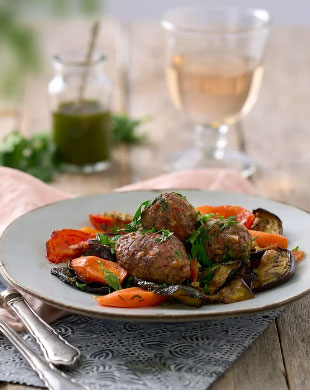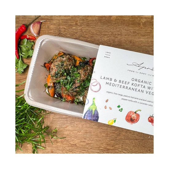 Try a taste of something new, with these juicy, organic Lamb and Beef Koftas by Après Food. Made with organic, free-range and pasture-fed lamb and beef, these koftas are mixed with nutty walnuts and almonds, and finished with sweet red peppers. They’re then moulded into the perfect shape to aid caramelisation when placed on the grill or in the oven. Served with seasonal, roasted Mediterranean vegetables and a delicate coriander salsa that cuts through the meat perfectly, this is a meal that’s beautifully balanced in every way.
