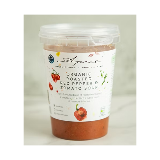 A richly flavoured of roasted red peppers, tomatoes, red lentils & a subtle touch of rosemary & lemon.