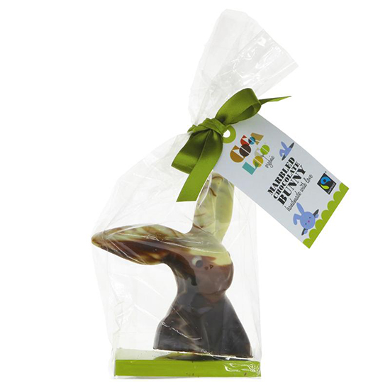 Cocoa Loco’s rather cute, completely solid chocolate rabbit is made with organic & fairtrade chocolate swirled together to give a marbled effect, no two rabbits are the same.
