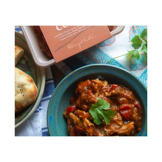 Succulent organic chicken combined with our very own recipe of mild to medium spices with red pepper and coriander which are allowed to develop slowly in the pot.