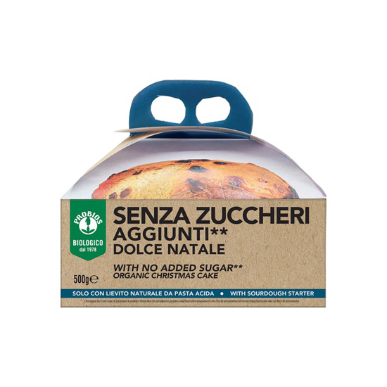 Probios Christmas Cake with No Added Sugar (there is naturally occurring sugar). This is ideal for those who want to reduce their sugar intake without giving up their festive treats! The slow sourdough leavening makes the dough soft and fragrant.