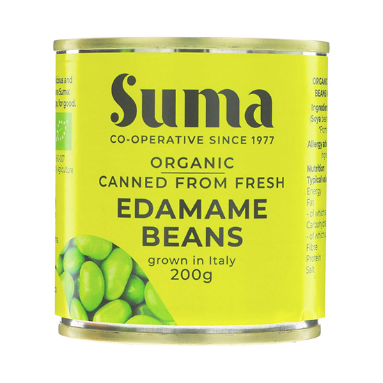 Young organic soy beans in salted water. Ready to use in hot or cold dishes; great boiled, steamed, fried or roasted. Just drain and rinse well. Drained weight 130g.