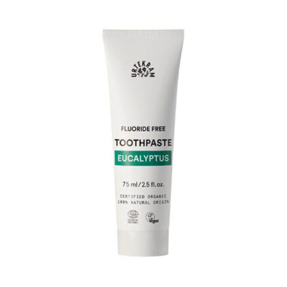 Certified organic eucalyptus toothpaste from Urtekram, contains no fluoride.